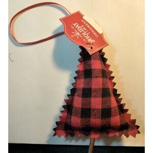 Enhance holiday decor with this plaid fabric Christmas tree ornament. Its compact size and ribbon hanger make it easy to display.