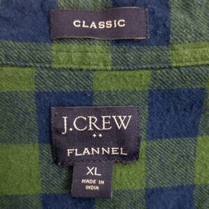 J. Crew “Reimagined” flannel shirt for men in size XL. Lightweight cotton build with a blue and green buffalo plaid pattern. A point collar, full button front, and classic workwear style. Clean with minor surface fuzzing. Ideal for layering in transitional weather or casual everyday wear. Solid staple for relaxed wardrobes or cool-season outfits.