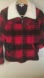 Cutest buffalo plaid jacket . Super cute. Medium p/p 20 inches , shoulder to hem 24 inches great look with black skinny jeans or skirt . Wow . Easy zip closure . Sherpa trim collar and cuffs. Zip breast pocket . Easy slide pockets each side. Acetate black lining . new without tags .Tried on not worn. Beautiful gift but too small for me. Black gloves not included.