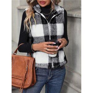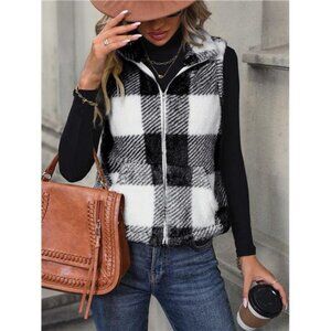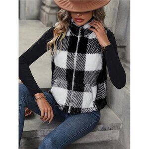 Buffalo Plaid Pattern Zipper Teddy Vest Jacket