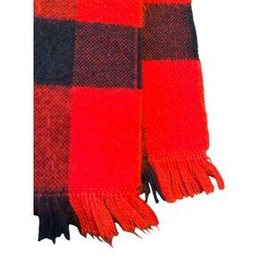Elevate your winter wardrobe with this buffalo plaid scarf, crafted from a wool blend for warmth and style. Its classic red and black pattern adds a timeless touch to any outfit, ensuring both comfort and fashion. Fringed edges provide a subtle yet stylish finish.