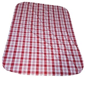 Stylish red and white checkered tablecloth. Perfect for dining or picnic settings.