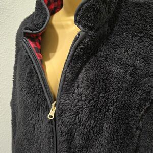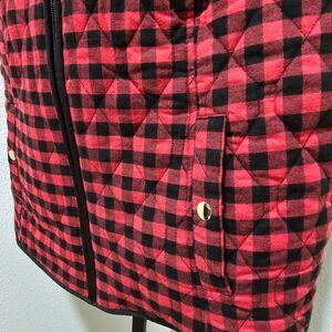 Buffalo Plaid Reversible Sherpa Vest Womens Lge Red Black Gorpcore Classic Warm