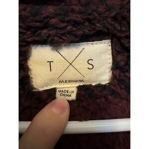 Buffalo Plaid Sherpa Half Zip Pullover Jacket – Burgundy Black – Women’s Medium