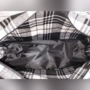 Discover the stylish Black & White Buffalo Plaid Weekender Duffle Bag, perfect for your next adventure! This brand new bag features a trendy buffalo plaid design throughout, giving it a chic and modern look. What sets it apart is the convenient shoe compartment at the bottom, made with faux leather and equipped with a zipper for easy access. This spacious bag measures approximately 21" x 12", providing ample room for all your essentials. Don't miss out on this fabulous and practical travel companion!