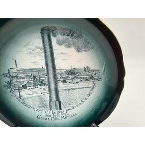 Buffalo Pottery Antique 7.5" B & M Smelter Smokestack Plate 1915 Great Falls Mt.