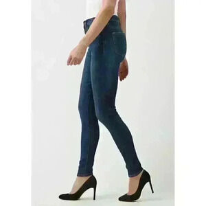 Skinny-fit stretch denim jeans in a dark indigo wash. Features afigure-hugging high rise and a fitted leg through to the hem. Light whiskeringand distressing throughout.