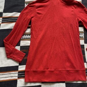 Sweater is in excellent shape with no spots, stains, snags, holes or fade. Sweater on the mannequin is not the true color.. my ring light changes color on items for some reason. The true color is sweater lying flat on blanket. Its a bright red. Has pockets. Beautiful embroidery design. Amazing shoulders. Oversized hood with tie strings.
