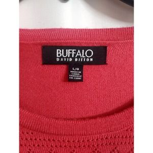 Buffalo by David Bitton Salmon Sweater. Size L. Long sleeves, 50% Viscose, 50% Nylon. Knit. Approximately 26" long, 21" sleeve, 16" armpit to armpit (measured flat). Machine wash Cold. fall, office, weekends, casual Pre Owned 66
