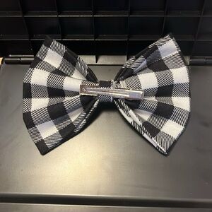 4” x 5” on alligator clip for versatility as a hairbow or as a bow tie