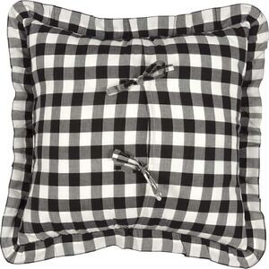 This 18x18 Black and White Buffalo Check Fabric Pillow is a fresh and lighthearted piece tailored to complete the look of your laid back farmhouse bedroom. Patterned with buffalo checks, and trimmed with gathered ruffles. 100% cotton shell, polyester fill. Reverses to same as front. New in package.