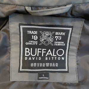 This is a very gently used Buffalo/David Bitton Biker/Windbreaker Jacket - Size Large. I've worn this maybe 3-4 times. The zippers on the front of the jacket are non functional. Only for aesthetic.