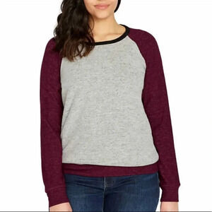 Buffalo Ladies' Cozy Crewneck top Medium Burgundy Grey Blue