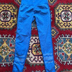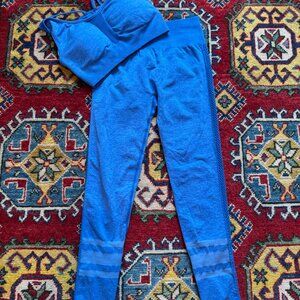 Ultra high, ultra-slimming waist and cutout detail on the sides. Workout bra has original cups. All in excellent used condition - no pilling.
