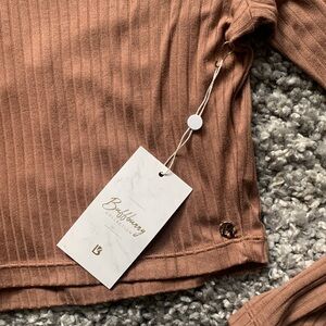 Brand new with tags never worn! Limited edition from the Naked collection. Very soft top with vertical stripe detail! Fabric is 94% viscose and 6% spandex. I believe this is in the “cocoa” shade.
