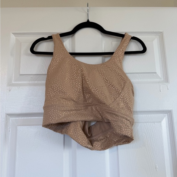 The Rosa Sports Bra is a longline sports bra with a highly supportive scoop neckline. The strappy back has two-strap criss-cross back design and is made with our signature NuBre fabric for a soft, second skin feel with high stretch retention. Strappy criss-cross back design. Scoop neckline. Removable bust pads. Fabric: NuBre (Nylon/Spandex). Medium – High Support Level