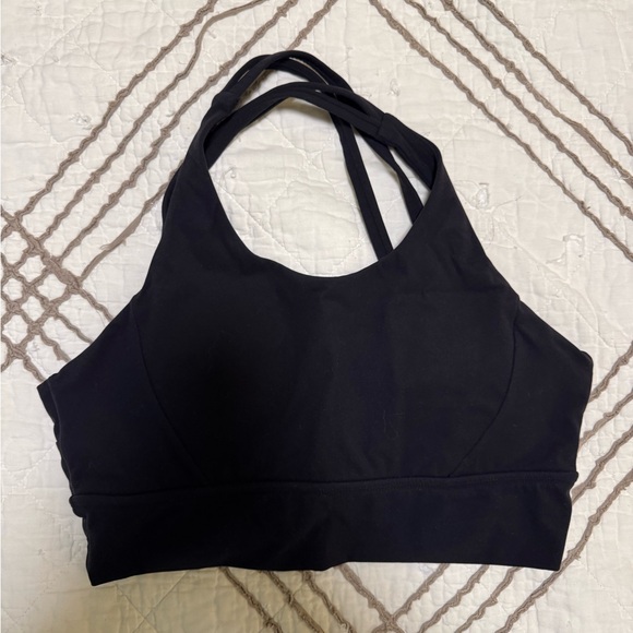 Experience comfort and support with this sleek black sports bra, perfect for any workout.