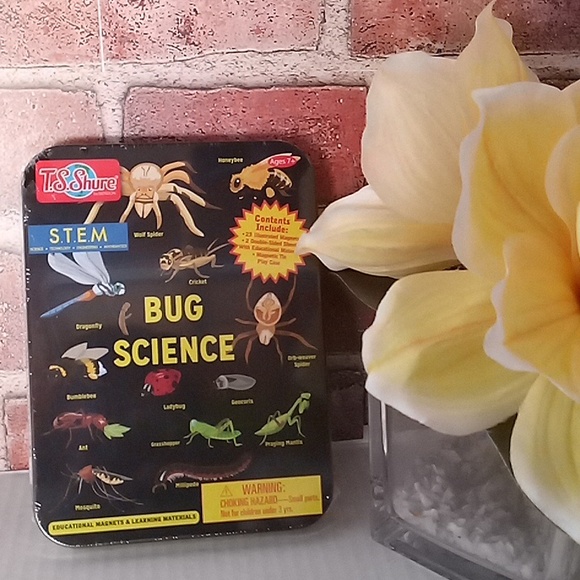 The contents of this kit includes 23 illustrated magnets, 2 double sided sheets with educational materials, magnet tin and playcase. play games and quiz kids on bug names and fun facts