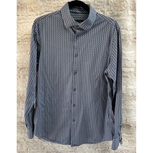 Bugatchi 8 Way Stretch Long Sleeve Shirt Men Medium Classic Blue Multicolor