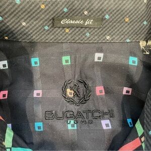 Bugatchi Black Classic Fit Multi-Color Square Print Button Up Short
