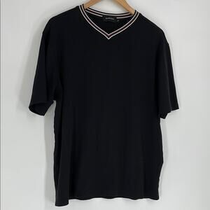 Bugatchi Black L V-Neck Short Sleeve T-Shirt with Striped Collar