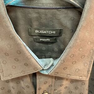 Experience the effortless style of this Bugatchi shirt, featuring a sleek black color and a classic pointed collar. Designed for casual occasions, it offers a comfortable fit and a smooth finish, making it a versatile addition to any wardrobe.