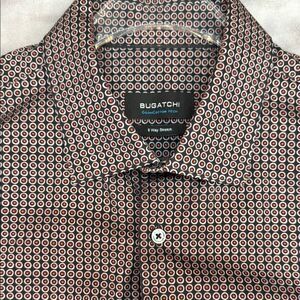 Experience the perfect blend of style and comfort with this Bugatchi casual button down shirt. Featuring a striking black and red color palette, this shirt is ideal for relaxed outings or casual gatherings. Its smooth fabric and tailored fit ensure you look sharp and feel great all day long.