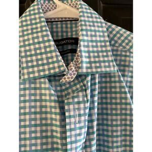 Bugatchi Blue Green Classic Fit Plaid Print Long Sleeve Button Down Shirt Size S
