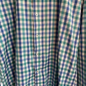 Bugatchi Blue Plaid Shape Fit Cotton Button Down Shirt Men Sz L