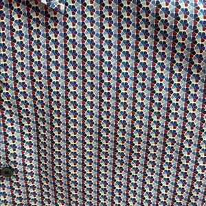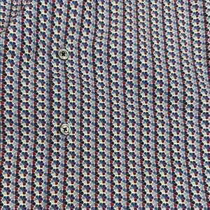 Experience the perfect blend of style and comfort with this Bugatchi casual button-down shirt. Featuring a subtle geometric pattern in blue and white, this shirt is ideal for relaxed outings or casual gatherings. Its long sleeves and pointed collar add a touch of sophistication to your everyday wardrobe.