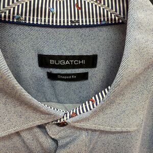 Bugatchi Blue and White Casual Button Down Shirt Long Sleeve