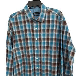 Bugatchi Brown and Blue Men's Button Down - Worn Once - EUC - Classic Fit - XXL