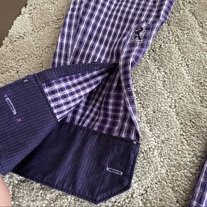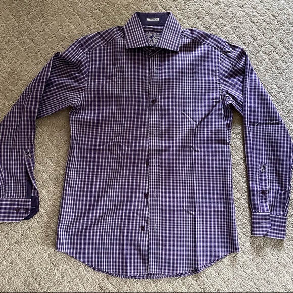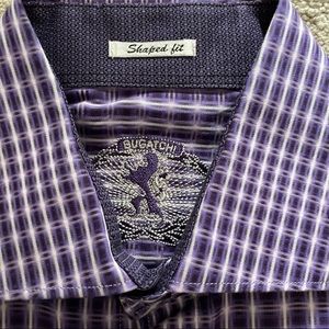 Purple bugatchi dress shirt with detail on the collar inside and cuffs. Shaped fit