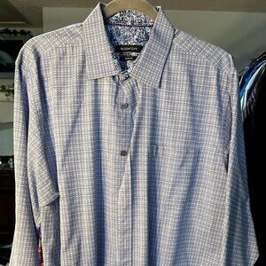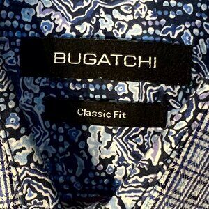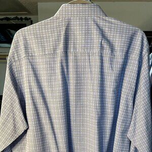 Bugatchi Classic Fit Blue & White Geometric 100% Cotton Long-Sleeve Btn-Up SZ 2X