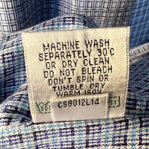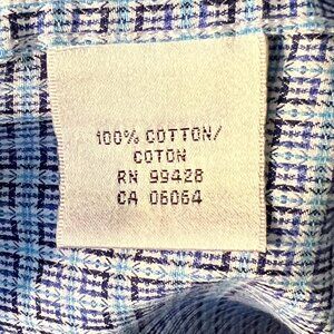 The Bugatchi Classic Fit Blue & White Geometric Long-Sleeve Button-Up Shirt in size 2X is a versatile and stylish addition to any man's wardrobe. Made from 100% cotton, this shirt features a classic collar, button closure, and a geometric blue and white pattern. Perfect for various occasions such as travel, parties, casual outings, and business meetings, this shirt is machine washable for easy care. With features like contrasting trim, packability, and pockets, this shirt is suitable for all seasons and is sure to make a statement in any man's attire.