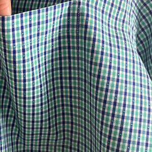 NWOT Bugatchi cotton Gingham Plaid, flip cuff, button up and a patch pocket on chest.