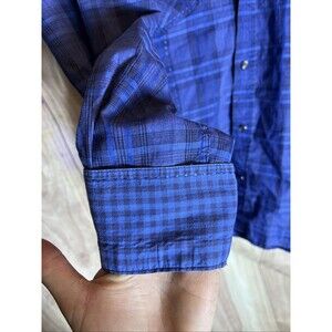The shirt is easy to care for and is breathable, lightweight, and suitable for all seasons. It is dry clean only and comes in a size L with a chest size of 44 inches. The plaid pattern is perfect for a classic and versatile style. This shirt is a must-have for any fashion-conscious man.