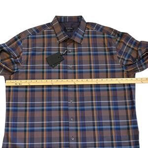 Bugatchi Dress Shirt Mens Size 2XL Brown Plaid Classic Fit Button Up Long Sleeve