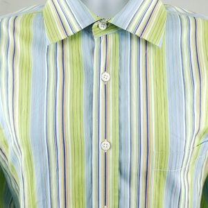 Bugatchi Green Blue Striped Cotton Sz XXL 2XL