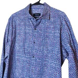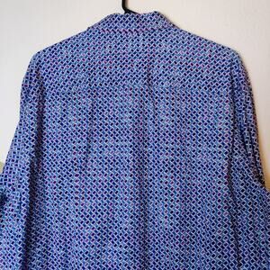 Bugatchi James Ooohcotton long sleeve button up shirt in purple and blue "Berry" geometric print. Men's size large.