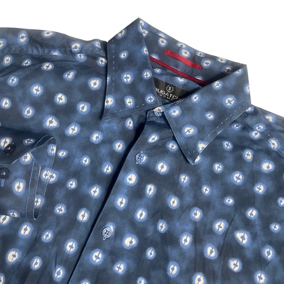 Bugatchi Large Button Down Blue Print Cotton Men's Shirt