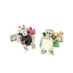 ITEM: Bugatchi Logo Silver Multi-Color Enamel Monkey Devil & Monkey Angel Cuff Links