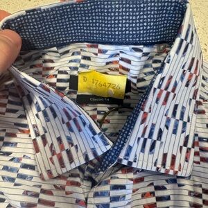 Bugatchi Men Medium Classic Fit Circular Design LS Dress Shirt
