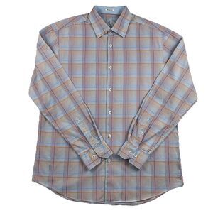 Bugatchi Men Shirt Button Up Long Sleeve Seersucker Pastel Tattersall-XL