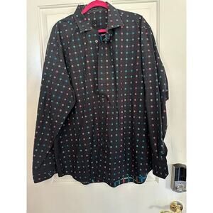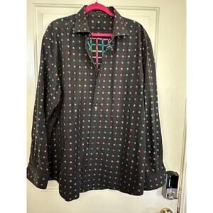 Bugatchi Men's Black Geometrical Pattern Collared Button Down Shirt Size XXL