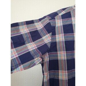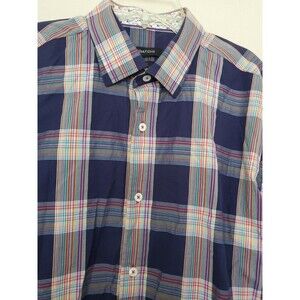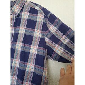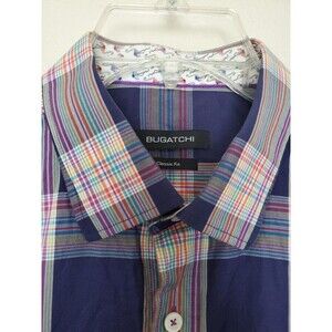Bugatchi Men's Blue Plaid Cotton Short Sleeve Shirt Classic Fit Large