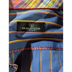 Bugatchi Men's Blue & Yellow Striped Long Sleeve Button Down Shirt Size 2XL