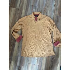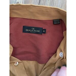 Bugatchi button down beige lightweight shirt. Rust color inner sleeve when rolled up. Men’s Medium. Chest measures 23 across and sleeve is 24.5 from shoulder. No holes or marks. Just needs a steam.