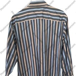 Bugatchi Men's Blues/Browns Striped 100% Cotton Button Down Shirt