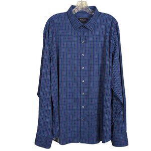 Bugatchi Men's Button Front Shirt Size XL Stretch Classic fit Blue Long Sleeve